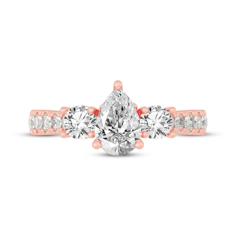 - Pear-Shaped & Round-Cut Three-Stone Diamond Engagement Ring 2 ct tw Rose Gold Plated