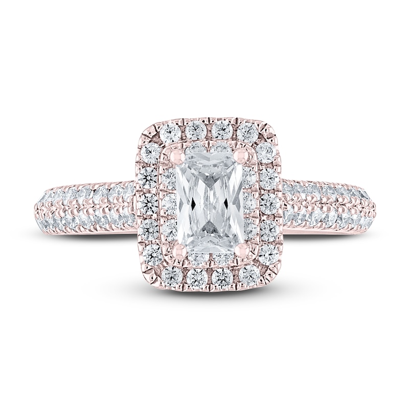 - THE LEO Diamond Engagement Ring 1 ct tw Emerald & Round-cut Rose Gold Plated