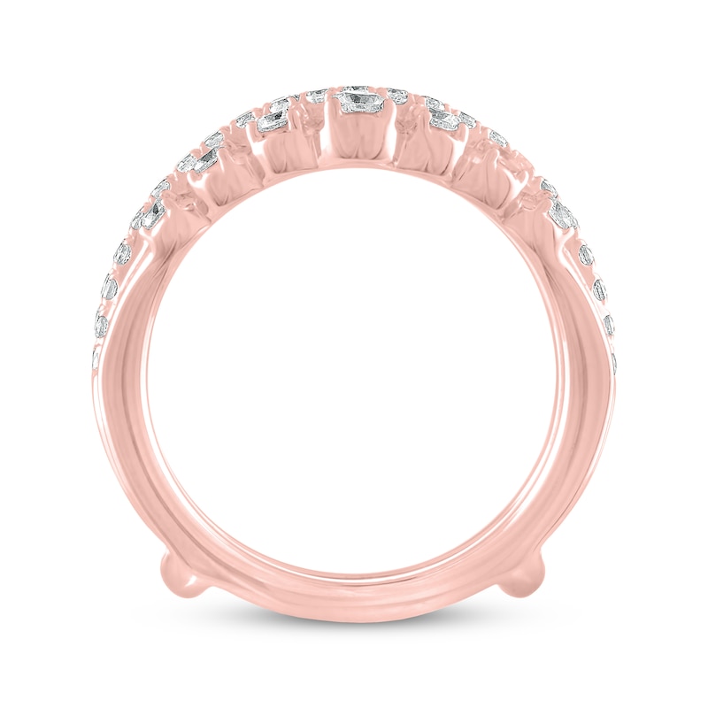 This stunning 14K rose gold enhancer ring features multi-sized brilliant round diamonds to accentuate the beauty of her engagement ring (sold separately). The ring has a total diamond weight of 1 carat and the diamonds are independently certified. From THE LEO Diamond® collection.