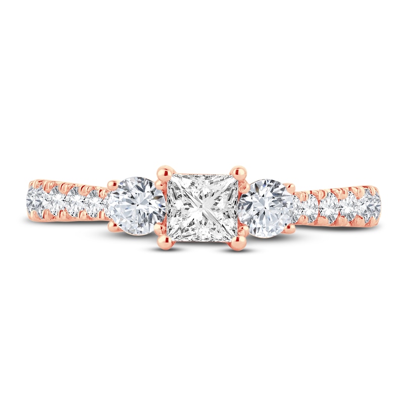 - Three-Stone Diamond Engagement Ring 1 ct tw Princess/Round-Cut Rose Gold Plated