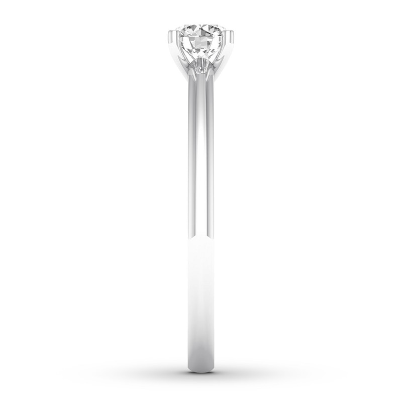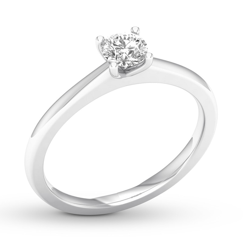One diamond can say so much - "I love you, and I want to spend the rest of my life with you." A sparkling 1/2-carat round diamond is the centerpiece of this gorgeous solitaire engagement ring, a beautiful declaration of love. The band is crafted of 14K white gold.