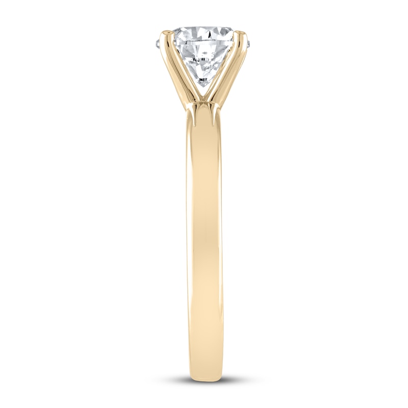 This breathtaking solitaire engagement ring from THE LEO Artisan collection showcases a brilliant round-cut, independently-certified 1.5-carat diamond at its center. The ring is crafted in timeless 14K yellow gold. This Leo Diamond Artisan solitaire engagement ring has a score of three Very High ratings on the GemEx Light Performance Report, and the center diamond is laser-inscribed with a unique Gemscribe® number for your peace of mind.
