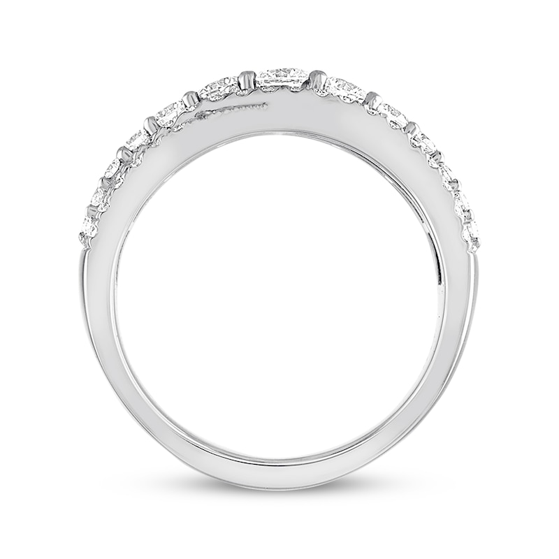 For the woman who will always bring light and love to your life, give her the diamond with far-away sparkle. This unforgettable THE LEO Diamond® anniversary ring showcases a row of independently certified round diamonds that shine brilliantly in the center. More dazzling sweeps of diamonds create an incredible display to complete the design, bringing the total diamond weight to 1 1/3 carats. The ring is styled in 14K white gold.