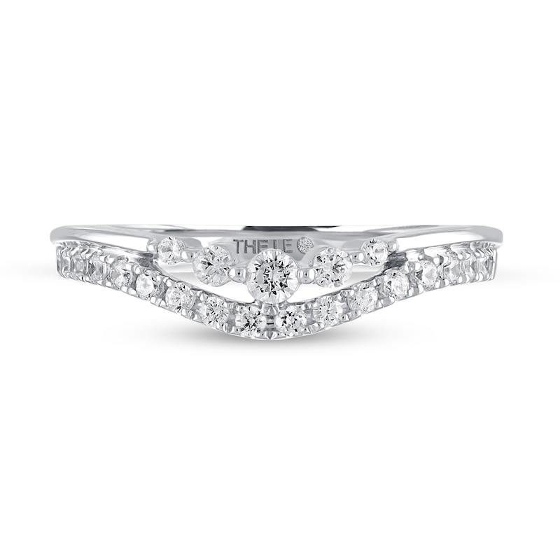 From the THE LEO Diamond® collection comes this beautiful enhancer ring crafted of 14K white gold. A lovely row of sparkling round diamonds support the above row of selected round diamonds to give the ring a total diamond weight of 3/8 carat. The ring is designed to enhance her diamond solitaire ring (sold separately).