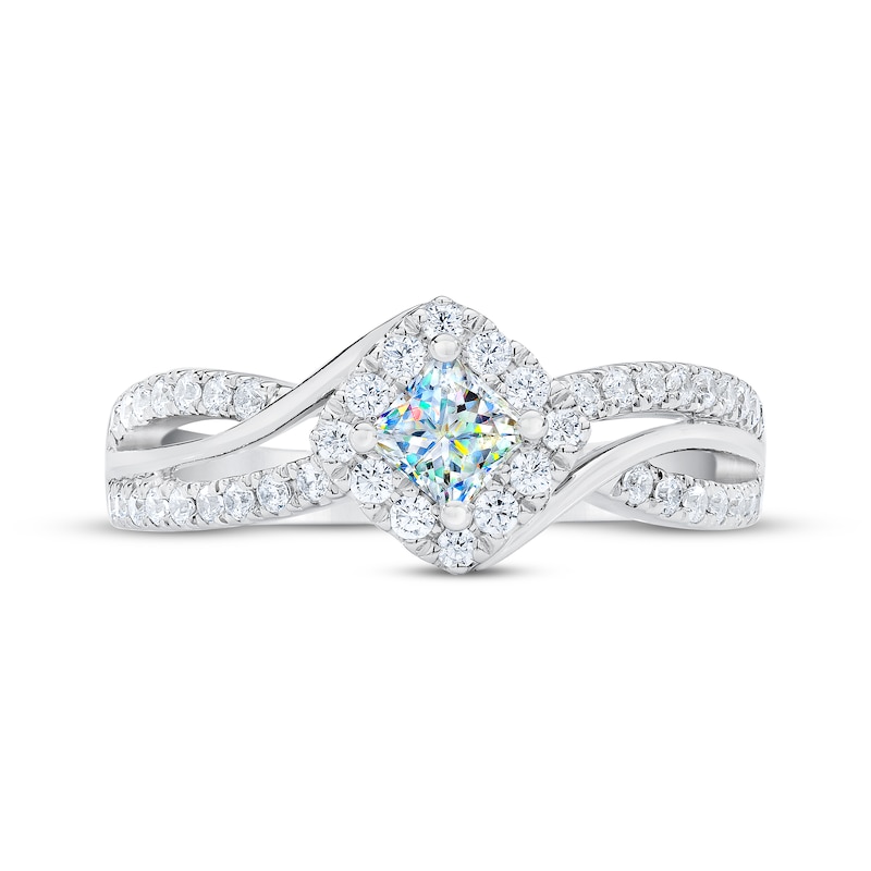 - THE LEO First Light Diamond Princess-Cut Engagement Ring 5/8 ct tw White Gold Plated