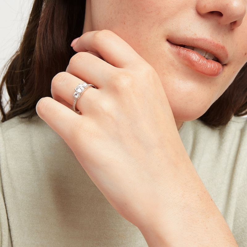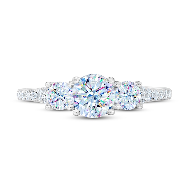 - THE LEO First Light Three-Stone Diamond Engagement Ring 1-1/4 ct tw Round-cut White Gold Plated