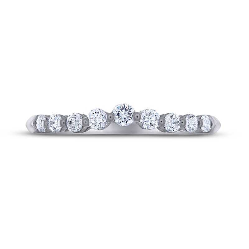 This lovely wedding band from THE LEO® Ideal Cut Diamond collection showcases an array of glittering round-cut diamonds styled in 14K white gold. Contoured to pair with her matching engagement ring (sold separately), the band has a total diamond weight of 1/3 carat.