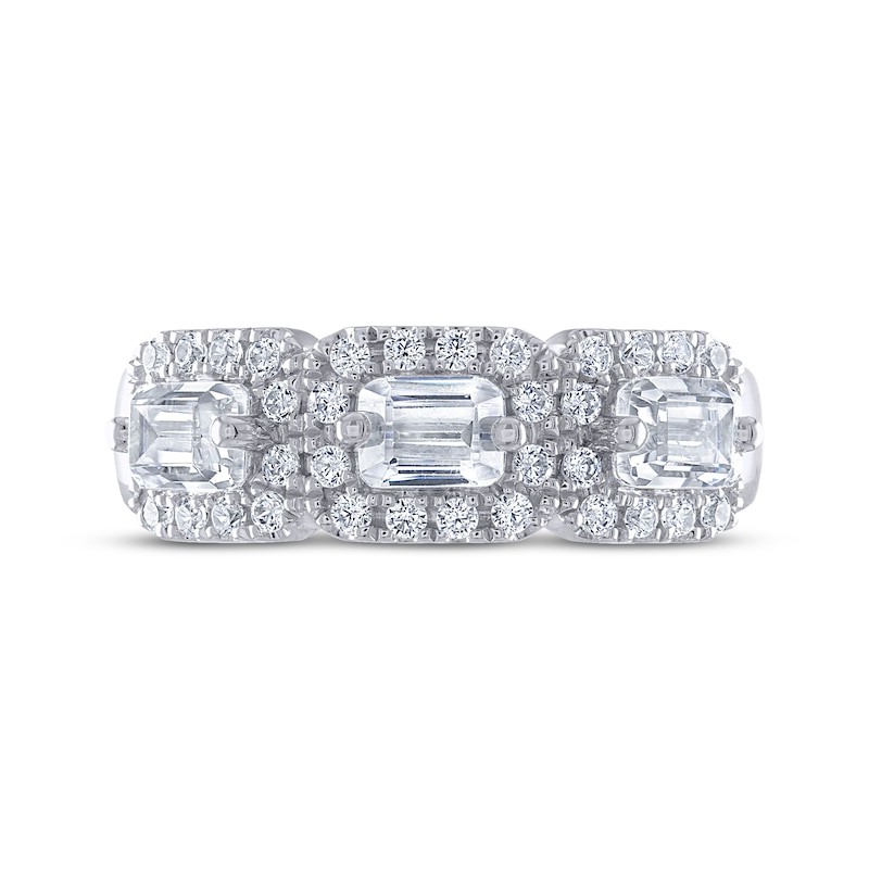 - THE LEO Legacy Lab-Created Diamond Emerald-Cut Three-Stone Anniversary Band 1-1/3 ct tw White Gold Plated