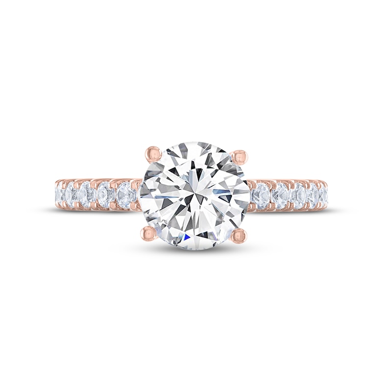 Introducing THE LEO® Legacy Lab-Created Diamond, which features additional facets that are strategically placed onto the lab-created diamond, maximizing the return of light and creating far away sparkle. An incredible 2-carat round lab-created diamond captivates at the center of this gorgeous engagement ring for her. Additional round lab-created diamonds shimmer down the 14K rose gold band for a total lab-created diamond weight of 2 3/8 carats. The central lab-created diamond is independently certified and laser-inscribed with a unique Gemscribe® serial number.