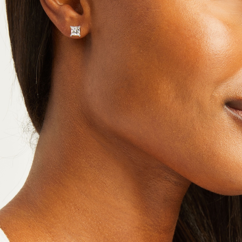 - THE LEO Legacy Lab-Created Diamond Princess-Cut Solitaire Stud Earrings 1-1/2 ct tw White Gold Plated