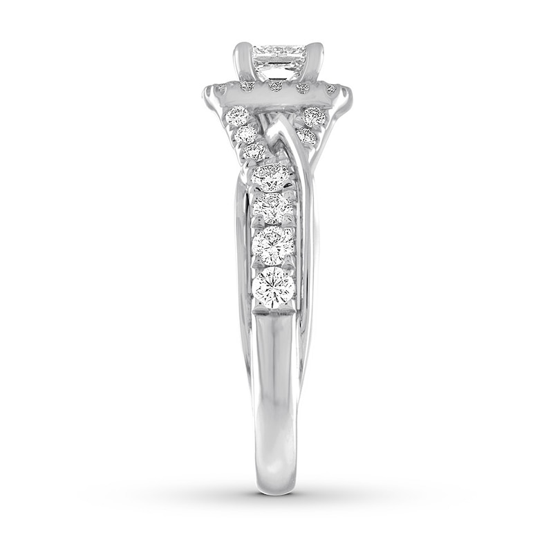 This gorgeous Leo Diamond engagement ring beautifully demonstrates how only one diamond can sparkle as brightly as your love. An independently certified, 1/2 carat princess-cut Leo Diamond is the stunning focal point, while shimmering round diamonds frame the center and flow gracefully along the band. The ring is styled in 14K white gold and has a total diamond weight of 1 carat. The center diamond is laser-inscribed with a unique Gemscribe® serial number for your peace of mind. Available online while supplies last. Previously Owned Jewelry is not eligible for in-store pick-up. Previously Owned Jewelry may only be shipped either to your home address or to an alternate address. Price comparison based on new item pricing.