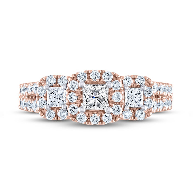 - THE LEO Diamond Three-Stone Engagement Ring 7/8 ct tw Princess & Round-cut Rose Gold Plated