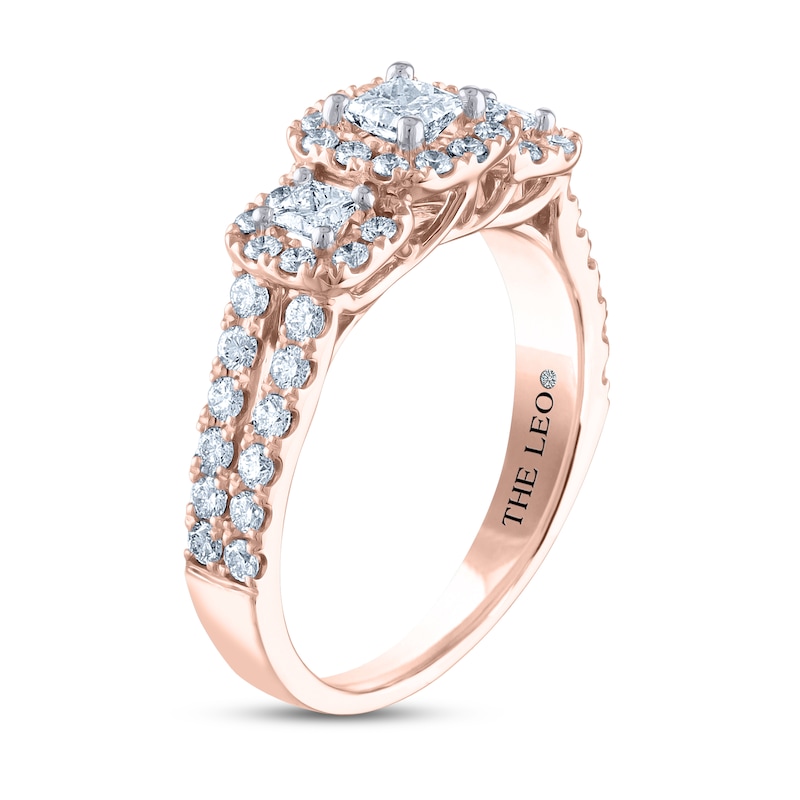 THE LEO Diamond Three-Stone Engagement Ring 7/8 ct tw Princess & Round-cut Rose Gold Plated
