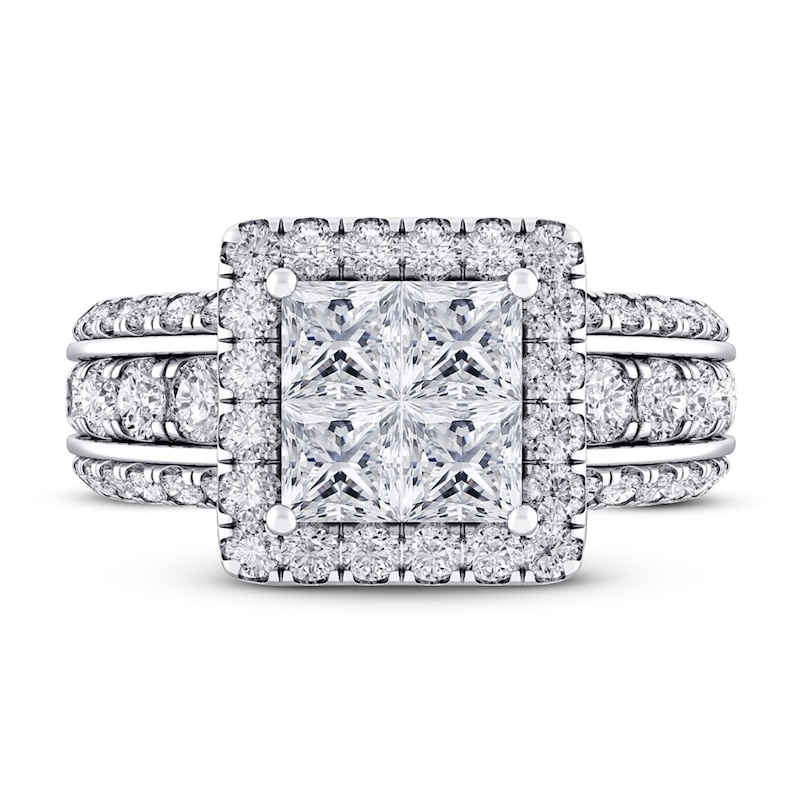 - Multi-Diamond Engagement Ring 3 ct tw Princess & Round White Gold Plated