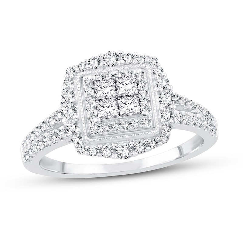 Multi-Diamond Engagement Ring 1 ct tw Princess & Round-cut White Gold Plated