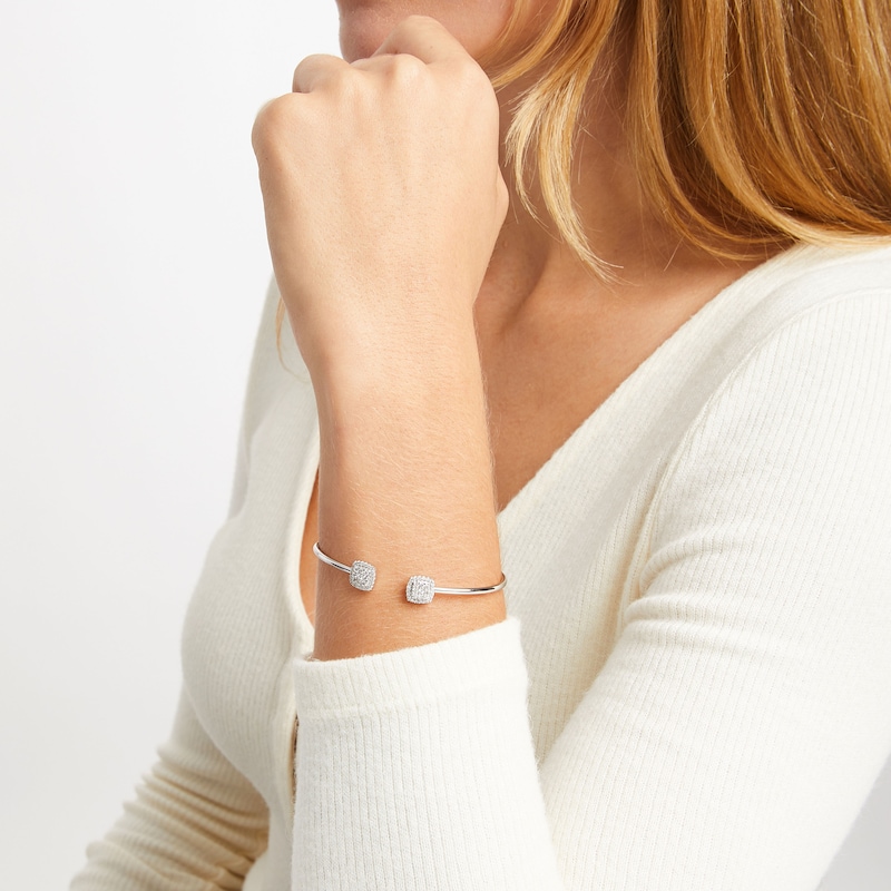 - Diamond Cushion Flex Cuff Bangle Bracelet 1/2 ct tw White Gold Plated
