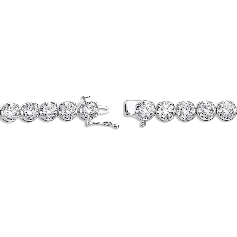 Sparkling round-cut, independently certified lab-created diamonds adorn this elegant line bracelet for her. Fashioned in 14K white gold, the style has an incredible total lab-created diamond weight of 12 carats. The 7-inch bracelet secures with a box clasp. From the Lab-Created Diamonds by KAY collection.