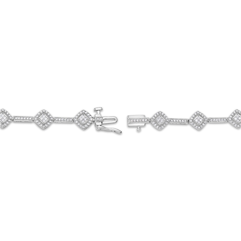 - Princess & Round-Cut Diamond Cushion-Link Bracelet 1-1/2 ct tw White Gold Plated 7.25"