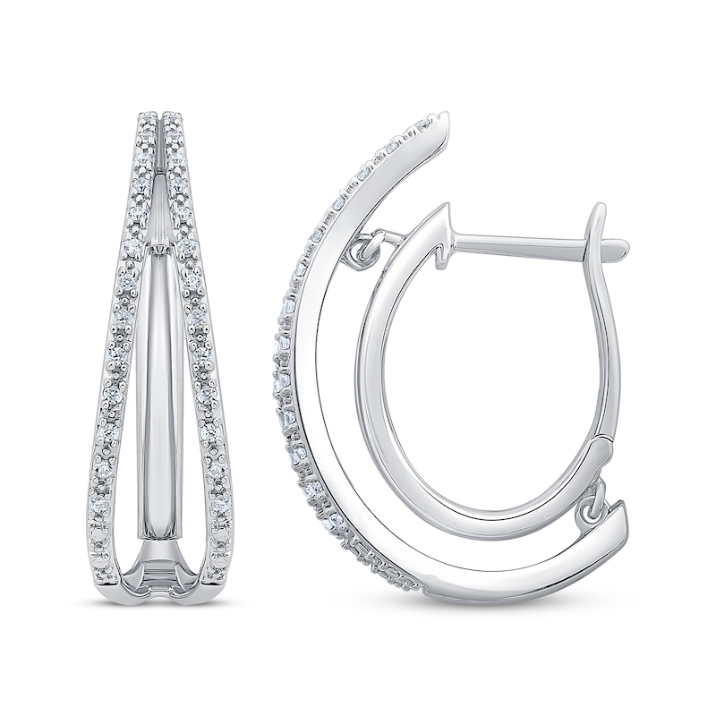 - Unstoppable Love Diamond Split Double Hoop Earrings 1/4 ct tw White Gold Plated