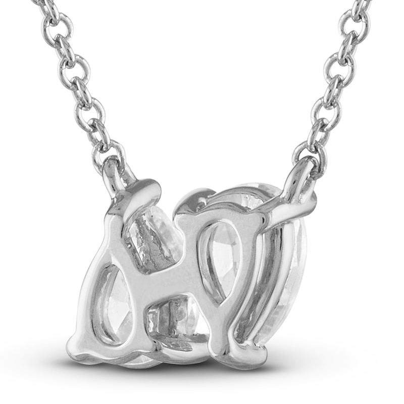 This gorgeous necklace shines with two pear-shaped 1/2-carat diamonds. Set in classic 10K white gold, the necklace has a total diamond weight of 1 carat. The pendant hangs from an 18-inch cable chain and secures with a lobster clasp.