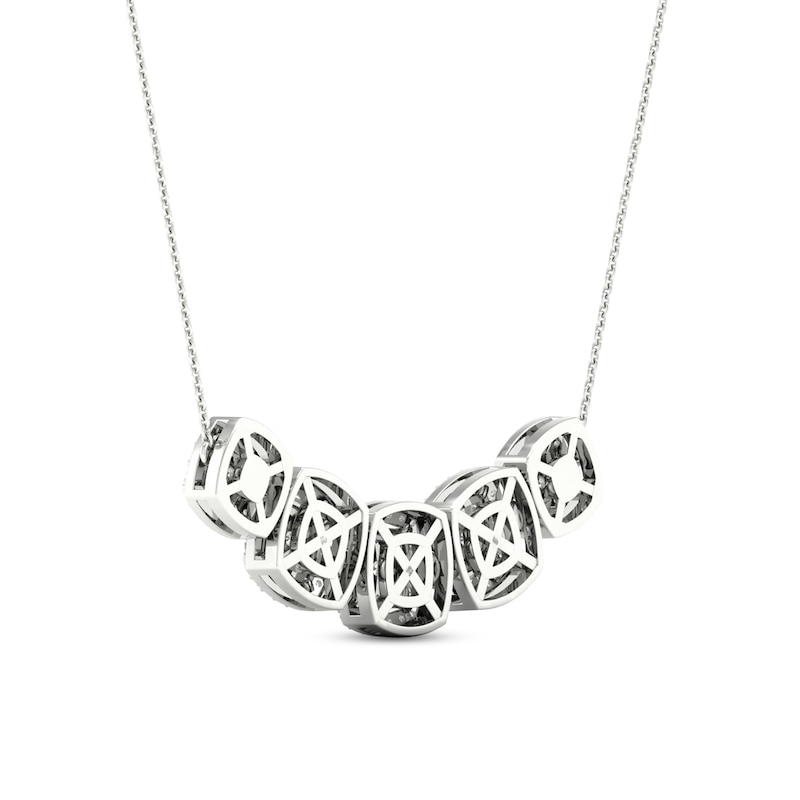 - Diamond Five-Cushion Necklace 1/2 ct tw Round-cut White Gold Plated 18"