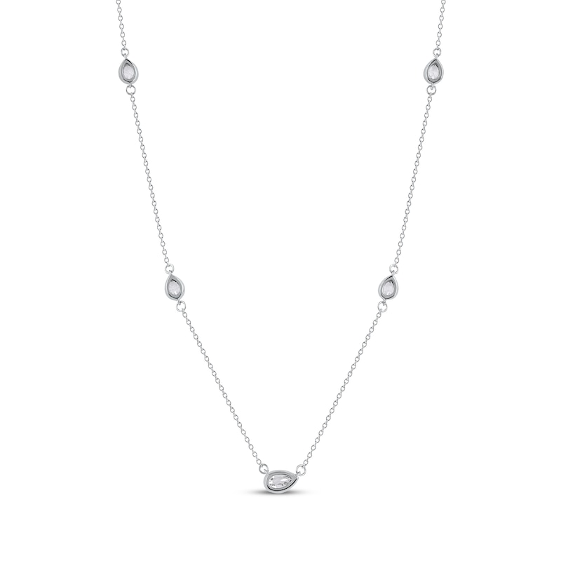 - Pear-Shaped Diamond Station Necklace 1/3 ct tw White Gold Plated 18"