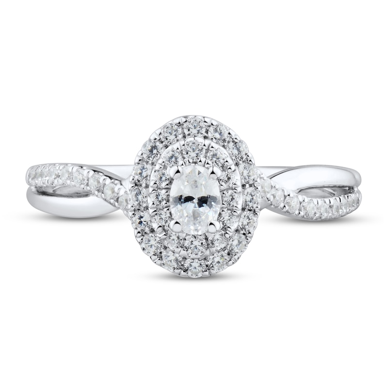 - Diamond Engagement Ring 1/2 ct tw Oval & Round-Cut White Gold Plated