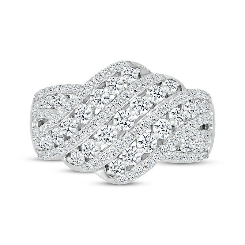 - Diamond Multi-Row Diagonal Crossover Ring 1 ct tw White Gold Plated