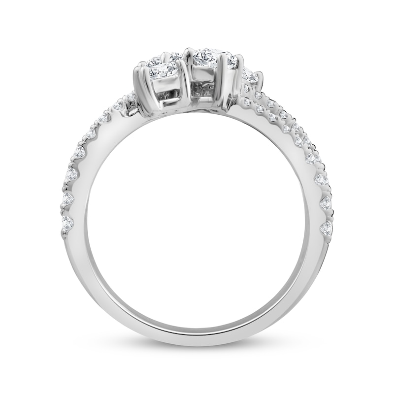 This enchanting diamond ring from the Everything You Are™ collection features five distinctively-shaped diamonds, symbolic of everything she means to you. Each diamond shape has a different meaning, from integrity and wisdom, to confidence, totality, and elegance. The beautiful 10K white gold ring features an oval-cut, emerald-cut, pear-shaped, round-cut, and princess-cut diamond at the center, while ribbons of brilliant round-cut diamonds flow outward. The gorgeous ring has a total diamond weight of 1 1/2 carats.