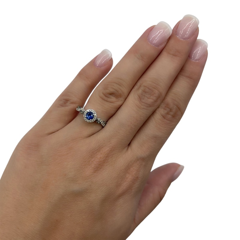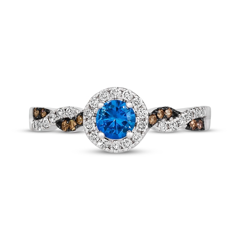This opulent and eye-catching Le Vian® ring from the KAY exclusive Chocolate Twist™ collection displays a bright round-cut Cornflower Sapphire™ haloed in glimmering Nude Diamonds™. The ring is styled in sweet 14K Vanilla Gold® and features twisting ribbons of Chocolate Diamonds® and Nude Diamonds™ for a dynamic contrast. The ring has a total diamond weight of 1/4 carat. Le Vian®. Discover the Legend. This ring is available in limited sizes. If you don't see your size here, please visit a store to order your ring.