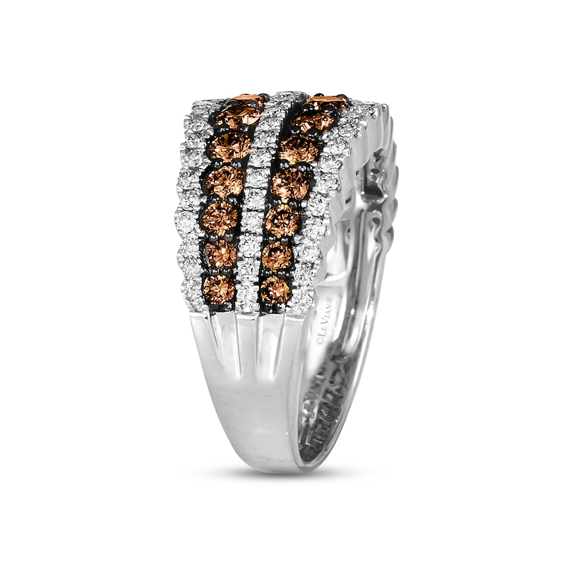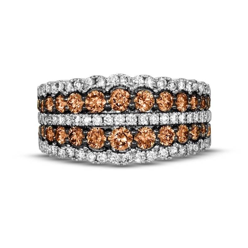 Luxe and luminous, this dazzling Le Vian® ring from the KAY exclusive Chocolate Waterfall™ collection showcases two rows of rich Chocolate Diamonds® that gently graduate in size. Nude Diamonds™ sparkle across the center and trace the subtly scalloped edges of the band, which is crafted in sweet 14K Vanilla Gold®. The ring has a total diamond weight of 1 5/8 carats. Le Vian®. Discover the Legend. This ring is available in limited sizes. If you don't see your size here, please visit a store to order your ring.