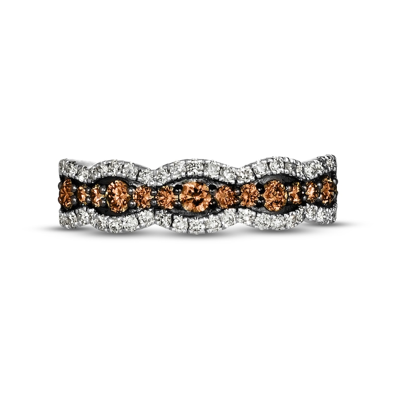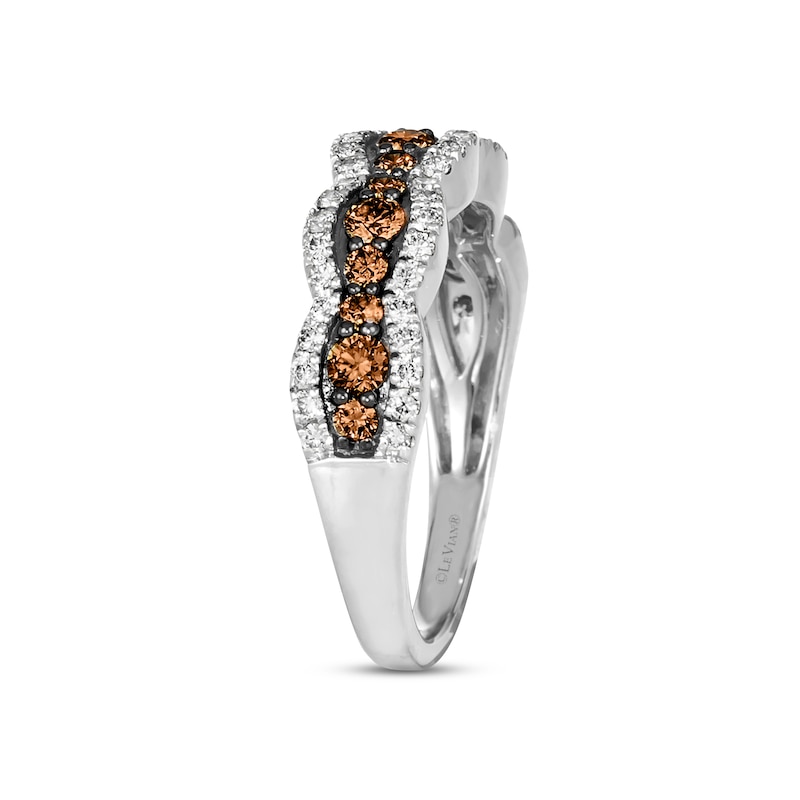 Tempting Chocolate Diamonds® gleam across the center of this beguiling Le Vian® ring from the KAY exclusive Chocolate Waterfall™ collection. Dazzling Nude Diamonds™ sweep along the edges of the scalloped band, which is crafted in sweet 14K Vanilla Gold®. The ring has a total diamond weight of 7/8 carat. Le Vian®. Discover the Legend. This ring is available in limited sizes. If you don't see your size here, please visit a store to order your ring.