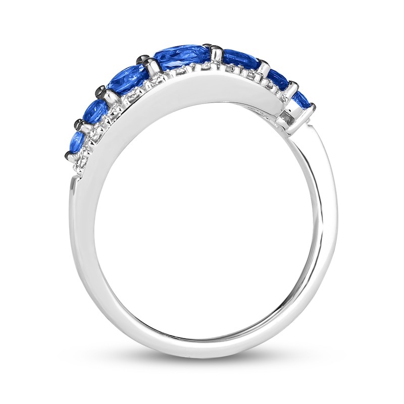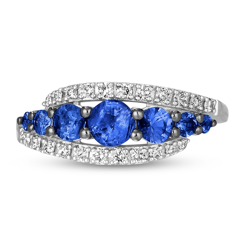 This delectable ring from Le Vian® features graduating round-cut Blueberry Sapphire™ gemstones across the center. Streams of round-cut Nude Diamonds™ shimmer above and below, totaling 1/5 carat in weight. The ring is fashioned in sweet 14K Vanilla Gold®. Le Vian®. Discover the Legend. This ring is available in limited sizes. If you don't see your size here, please visit a store to order your ring.