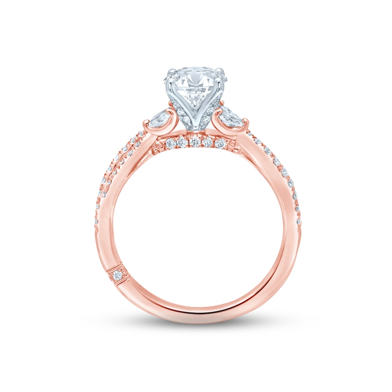A beautiful 1-carat independently-certified round diamond sparkles in 18K white gold prongs at the center of this luxe ring for her. Gorgeous marquise-cut diamonds flank each side of the center diamond, and brilliant round diamonds shimmer down the band in dual rows for a total diamond weight of 1 3/8 carats. The ring is crafted in dreamy 18K rose gold. From the Monique Lhuillier Bliss collection, available exclusively at KAY. Please note: This ring is available in limited sizes. If you don't see your size here, please visit a store to order your ring.