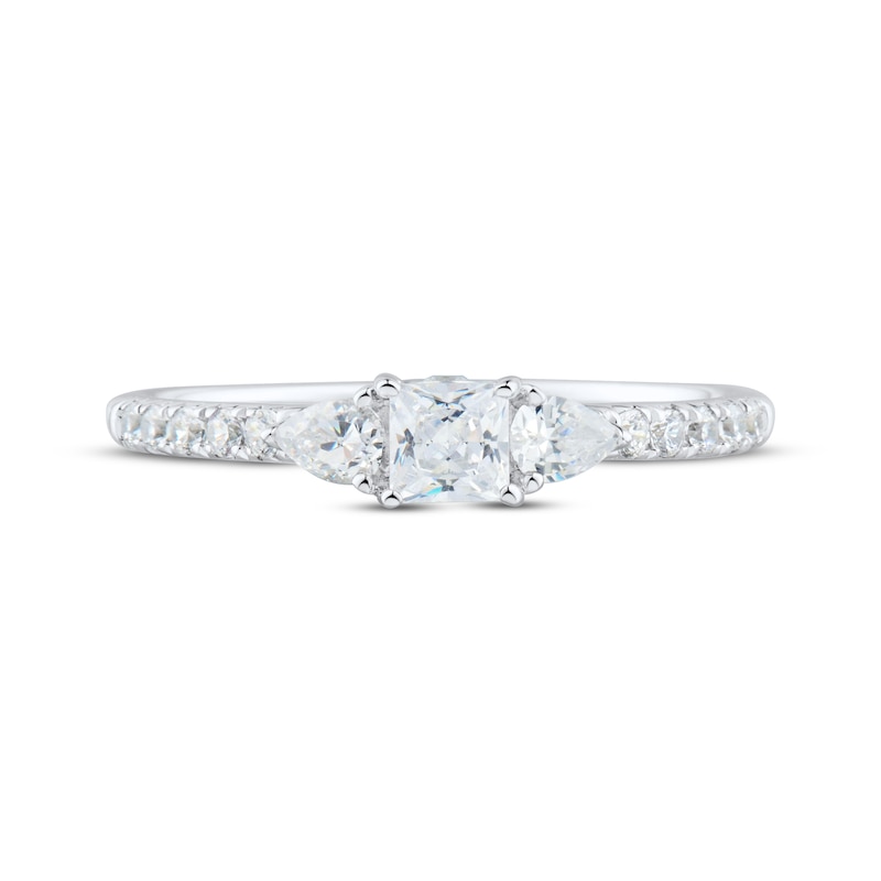 - Princess-Cut, Pear-Shaped & Round-Cut Diamond Three-Stone Engagement Ring 3/4 ct tw White Gold Plated