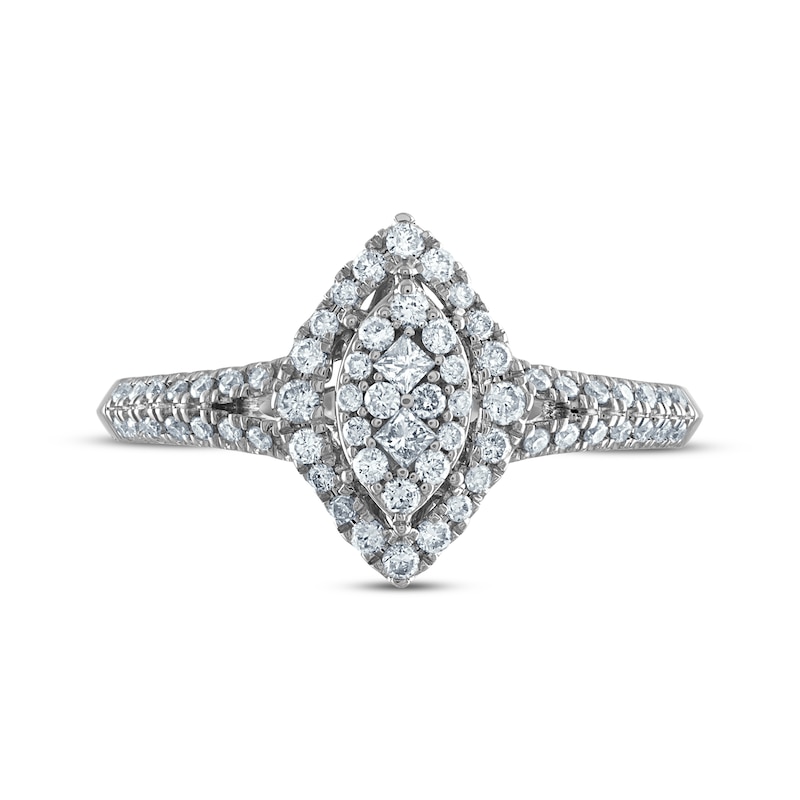 - Princess & Round-Cut Multi-Diamond Center Marquise Frame Engagement Ring 3/8 ct tw White Gold Plated