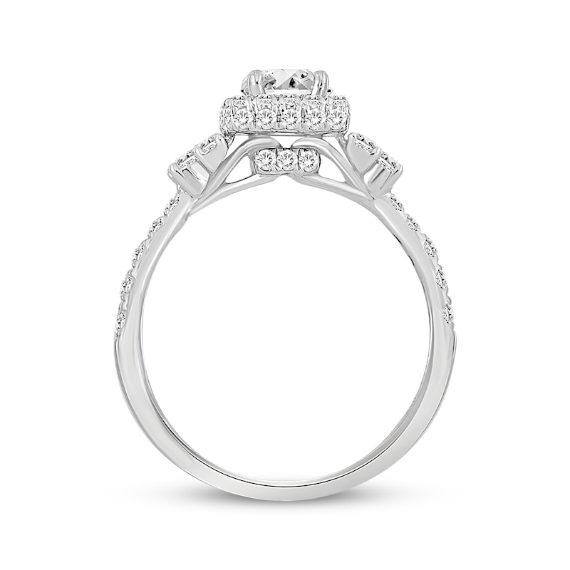 - Round-Cut Diamond Cushion Frame Engagement Ring 1-1/8 ct tw White Gold Plated