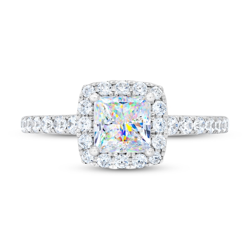 - THE LEO First Light Diamond Engagement Ring 1-3/8 ct tw Princess & Round-cut White Gold Plated