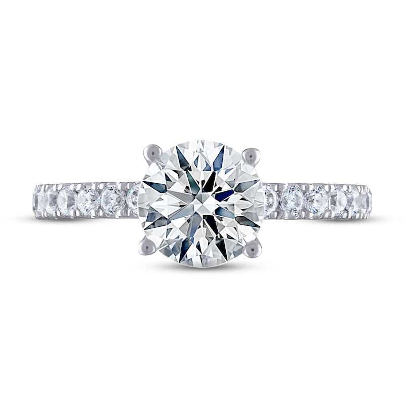 Introducing THE LEO® Ideal Cut Diamond, a rare diamond of geometrically perfect proportions that releases the maximum amount of fire, sparkle and brilliance – to let your unique love for each other truly shine through. This beautiful engagement ring for her features a sparkling Ideal Cut diamond. Brilliant round-cut diamonds adorn the modern 14K white gold band, giving the ring a total diamond weight of 1 7/8 carats. The independently-certified center diamond is laser-inscribed with a unique Gemscribe® serial number to ensure your peace of mind.