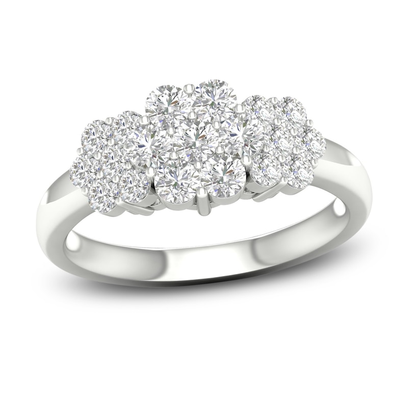 Diamond Triple Flower Ring 1 ct tw Round-cut White Gold Plated