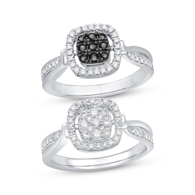 Black & White Multi-Diamond Center Cushion Convertible Ring 3/8 ct tw Round-cut White Gold Plated