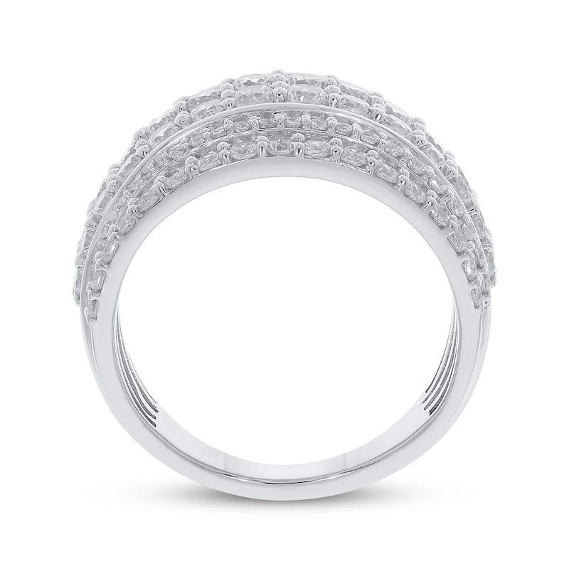 Your love sparkles more with each passing day. Symbolize your timeless romance with this glamorous multi-row anniversary band. Radiant round-cut diamonds in various sizes adorn the wide band, which is crafted in iconic 10K white gold. The ring has an impressive total diamond weight of 2 carats. From the Now & Forever® bridal collection.