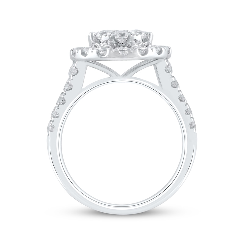 This magnificent engagement ring was made for your big moment. A pear-shaped composite of independently certified round lab-created diamonds creates the stunning centerpiece when wrapped in a halo frame of round lab-created diamonds. Adorning the split shank, additional round lab-created diamonds add extra sparkle. The ring is crafted in 14K white gold and has an impressive total lab-created diamond weight of 2 1/2 carats. The 1/3-carat lab-created diamond at the center is laser-inscribed with a unique Gemscribe® serial number to ensure your peace of mind. From the Lab-Created Diamonds by KAY collection.