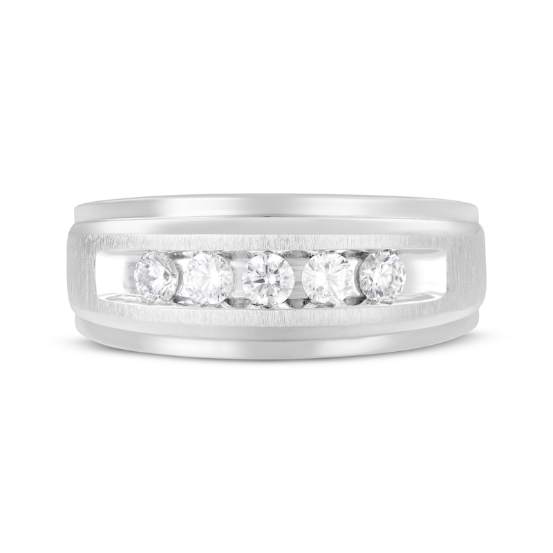 - Men's Diamond Five-Stone Brushed Wedding Band 1/2 ct tw White Gold Plated