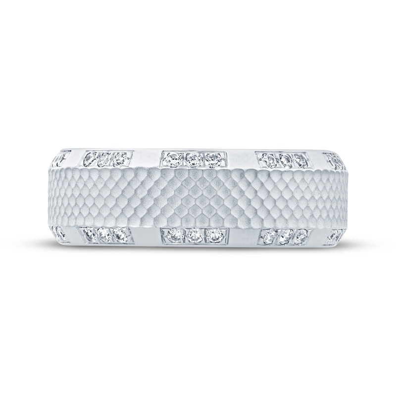- Men's Diamond Sandblast Textured Wedding Band 1/3 ct tw Round-cut White Gold Plated