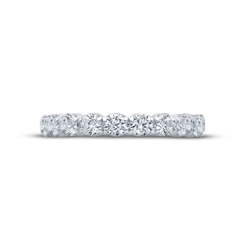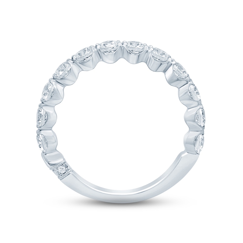 Honor your lasting love with this gorgeous anniversary band. A row of stunning round-cut diamonds sparkles along the 18K white gold band. The diamonds are independently certified and total 1 1/2 carats in weight. From the Monique Lhuillier Bliss collection, available exclusively at KAY. Please note: This ring is available in limited sizes. If you don't see your size here, please visit a store to order your ring.