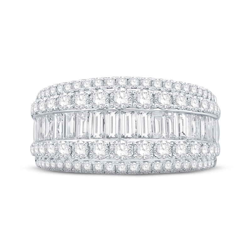- Diamond Anniversary Ring 2 ct tw Round & Baguette-cut White Gold Plated
