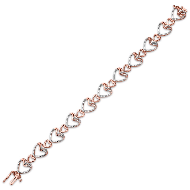 - Diamond Stacked Hearts Link Bracelet 1/2 ct tw Rose Gold Plated 7"