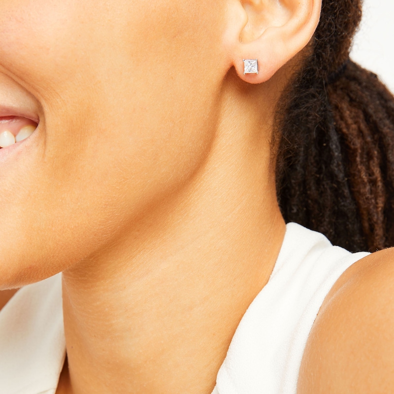 Diamond Solitaire Stud Earrings 3/4 ct tw Princess-cut White Gold Plated
