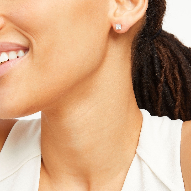 Diamond Earrings 2 ct tw Princess-cut White Gold Plated